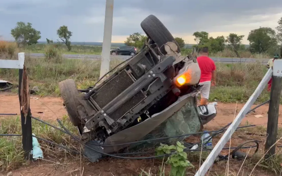Ainda conforme a PF, o acidente aconteceu depois que o motorista ultrapassou alguns veículos. Ao voltar para a pista de origem, ele perdeu o controle do carro, bateu em um barranco e o capotou diversas vezes. O carro ficou totalmente destruído.