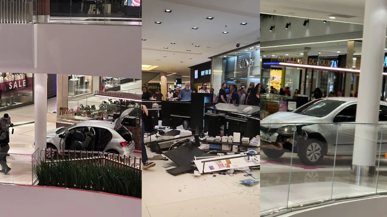 - O veículo quebrou uma porta de vidro e percorreu cerca de 50 metros pelos corredores do shopping.